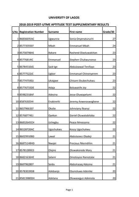 Read unilag supplementary list Reader